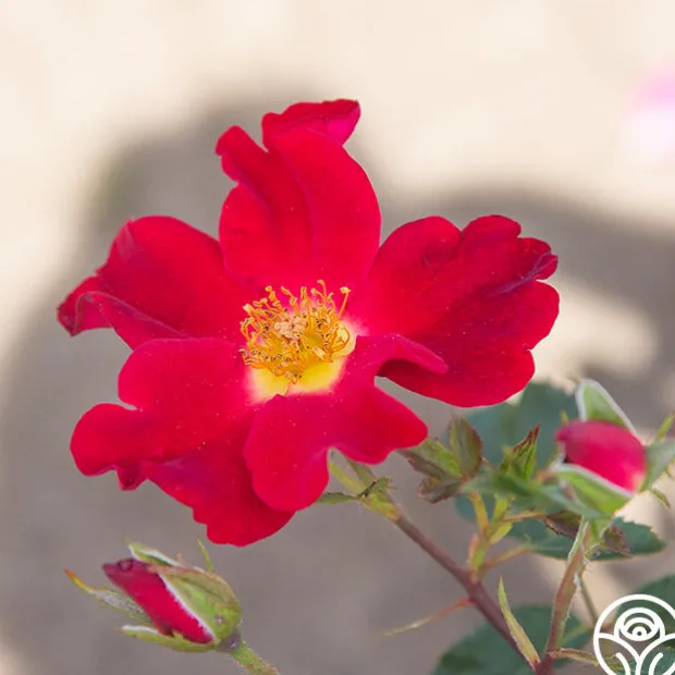 We named this lovely shrub rose to honor a wonderful English gentleman who is the world’s expert on old roses. Peter Beales™ is a nicely perfumed, single, rich crimson-red bloom with a pronounced golden eye. Flowers cover the rounded, densely foliage bush all season. His rich, dark green foliage provides a perfect contrasting background for the lovely blooms.