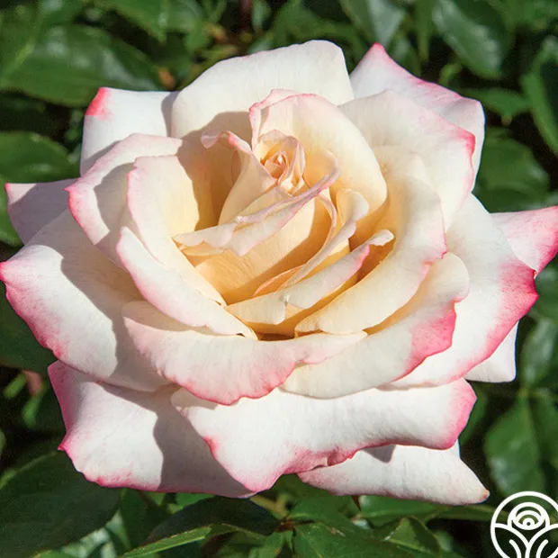 This breakthrough Hybrid Tea delivers an exquisite fragrance of citrus and spice while providing exceptional disease resistance. Her ovoid buds unfurl into large, cream-colored flowers that look like they have been gently dipped in bright pink paint that fades to lavender. This rose will look fantastic in the garden and beautiful in a vase.