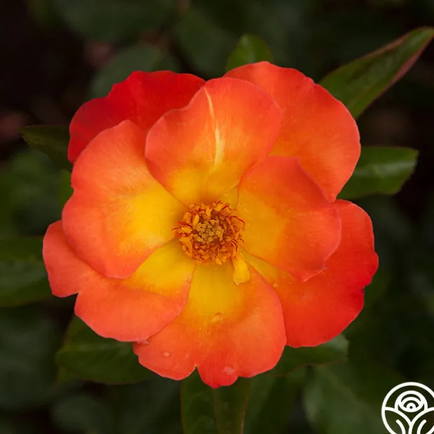 Playboy® is an eye-catching Shrub rose with single, 4″ blooms of 7-11 petals in orange-copper, gold and scarlet with delicately ruffled petals. Her flowers almost appear as bright, little candles of orange and pink in the garden. Expect prolific blooms with this rose and minimal care on the gardener’s part as she is very easy-to-grow. Playboy® is a compact, continual blooming bush with dark, glossy foliage.
