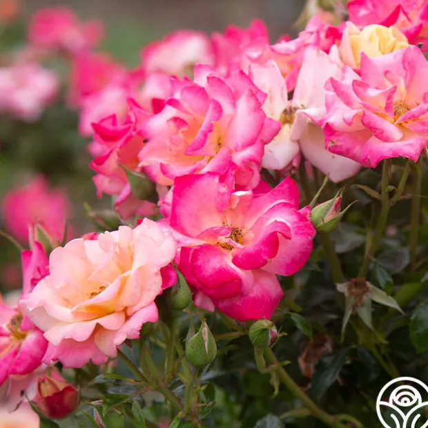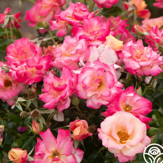 Polynesian Punch™ is a compact Floribunda Rose staying around 4’ tall by 3’ wide, making her a perfect choice for containers on patios, porches, and balconies. She is an over-achiever producing a non-stop, massive display of blossoms in a kaleidoscope of colors from orange to pink to yellow. With so much color, it’s like having several roses in one! Her blossoms average 2.5” with 15-17 petals. Polynesian Punch™ is best suited for the dry climate of the West Coast in zones 6-9.