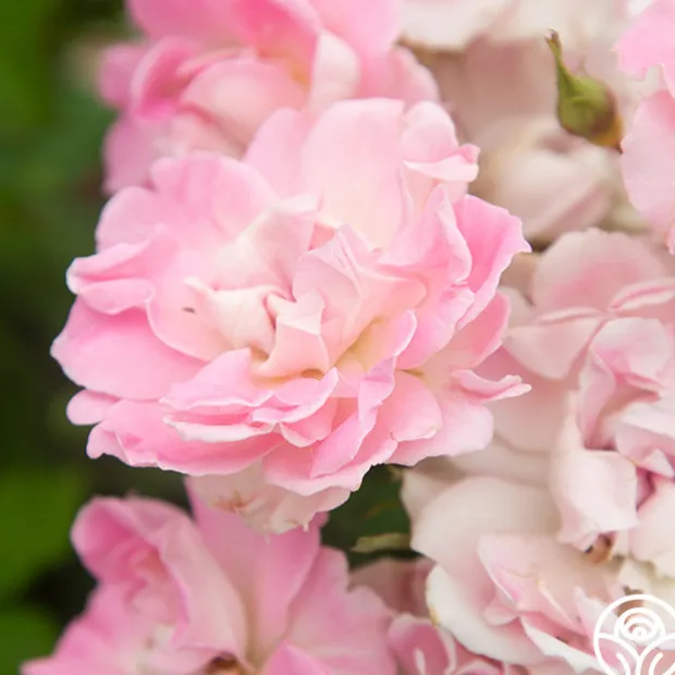 Bright pink with green and white petal undertones, Porcelain Rose is bursting with blooms that are double and borne mostly solitary on nearly thornless canes. The fragrance of this Shrub is lightly aromatic. Porcelain Rose is a prolific continual bloomer, inviting you to enjoy her beauty all season long.