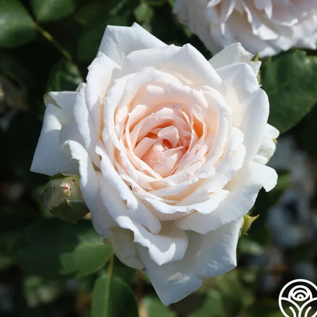 One of the most beautiful of all white roses, Prairie Star™ features showy ivory-white flowers with shell pink centers and a slight fragrance of lemons that bloom from late spring to fall. Her wonderful high-centered, fully double 4” blooms with 50-60 petals grow on an upright, continual blooming bush well clothed with luxuriant dark-green leathery foliage. She is winter hardy in the midwest without protection.