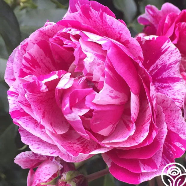 A striking rose, Raspberry Stripe has deep striped coloring and light fragrance. This Shrub is shade tolerant and great for cutting. Her bloom is fully double and will add a splash of flair to any garden landscape.