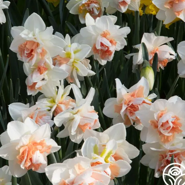 Note: Bulbs ship starting in October based on availability and your zone, unlike other products. Plant around or after your first frost but before the ground freezes. Replete is a stunning, double Daffodil with unique multi-petaled blooms of ivory white petals with ruffled salmon-pink centres. An excellent naturalizer, Replete will spread throughout your garden year after year. This fragrant Daffodil makes an excellent cut flower. Replete is deer resistant and easy to grow.