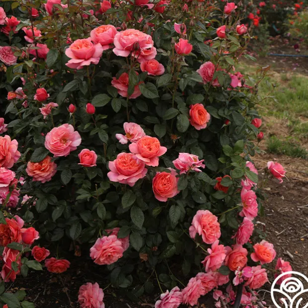 Safari™ has deeply cupped, old-fashioned blooms with the coloring of an African sunset that will be a definite attraction in your garden. Her soft, coppery-bronze flowers shade to rich coral toward the outer edge of the blooms which are produced in great abundance. Expect Safari™ to remain a compact, bushy plant with 3-4″ bloom of 35+ petals.