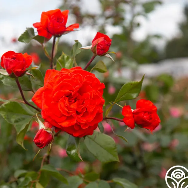 Salita™ is a vibrant orange-red rose with tall canes perfect for arrangements. With blossoms of 3.5” in diameter and up to 40 petals per bloom, expect her to stand out in the garden. Her glossy, green foliage makes an excellent backdrop for her bright blooms. Expect her to climb to about 6-9’ tall.