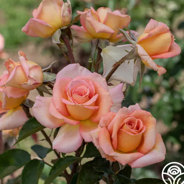 Scent-sation is one of the most fragrant Hybrid Tea roses in phenomenal creamsicle coloring. Her high-centered, 5″ blooms with a petal count of 45+ have impeccable form in a blend of creamy orange and soft, peachy pink. Blossoms form singularly and occasionally together in clusters on a tidy, continual blooming, bushy, and vigorous plant with dark green foliage. She is sensational in every way, just as her name implies. We love continually blooming Scent-sation in pots or garden beds.