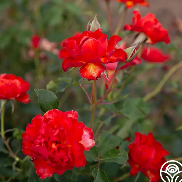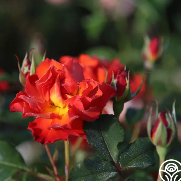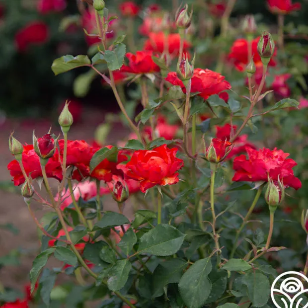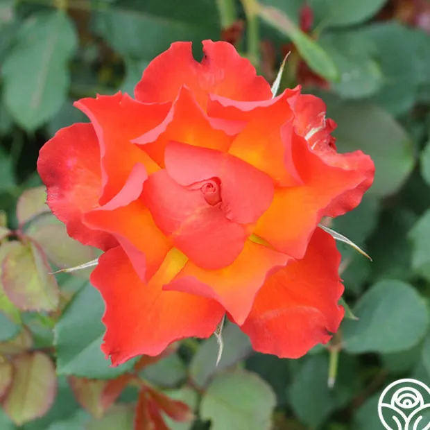 Sunrise at Heirloom™ is just as her name sounds, only without the many hot air balloons that dot the sky over our nursery in the mornings. She is a bright, fiery orange with ruffled 3″ blooms that profusely bloom. While she lacks a strong fragrance, this continually blooming bushy Shrub has very shiny green leaves to offset her flaming colors.