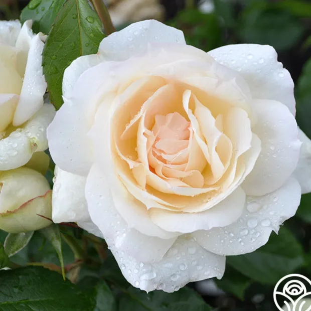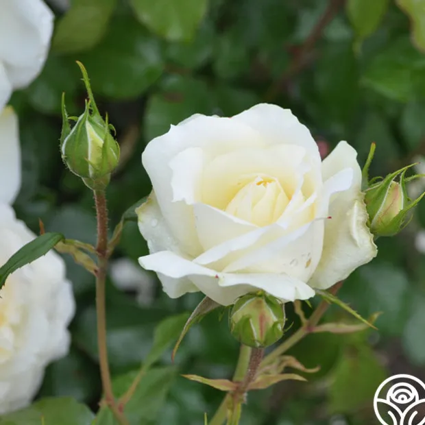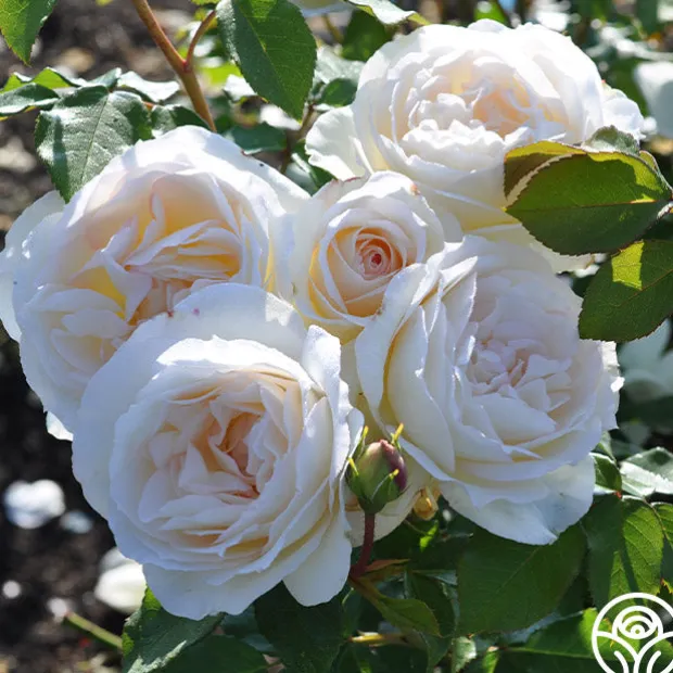 A rose named after the Russian composer, Tchaikovsky®, this plant produces large, very full, old-fashioned, 4” rosette blooms in clusters. His creamy white flowers have a buttery yellow center which look beautiful against the dense medium, semi-glossy, dark green foliage. He is a vigorous and bushy plant that blooms continuously and offers excellent disease resistance.