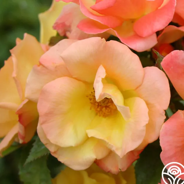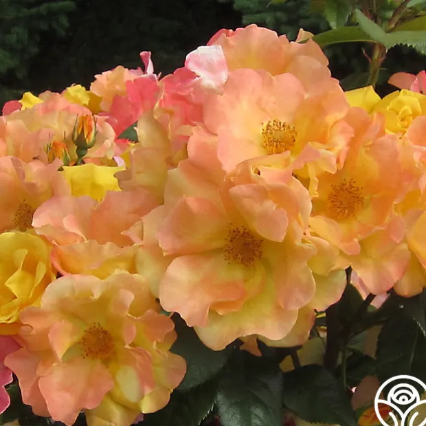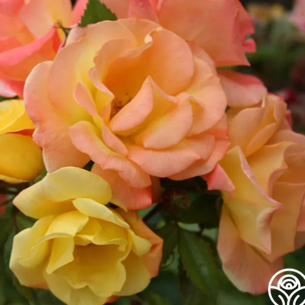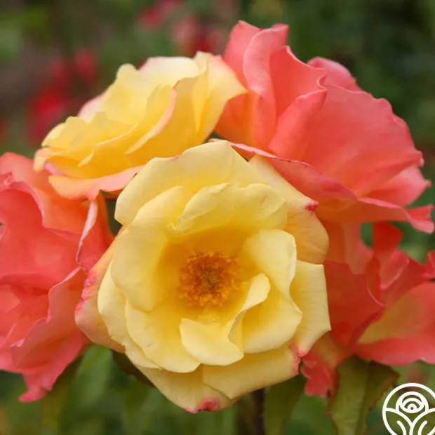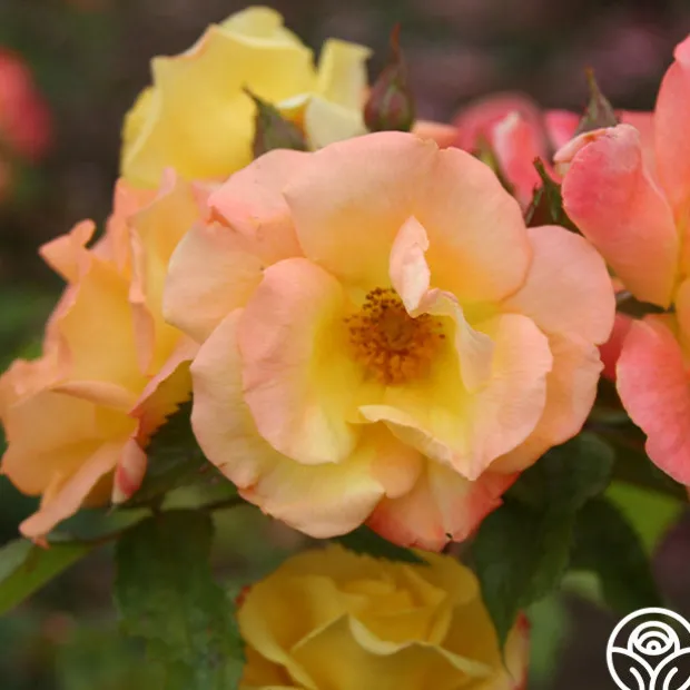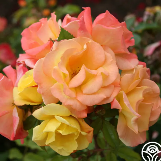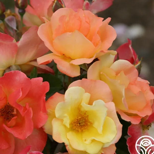 As though right before your eyes, the blossoms of The Magician™ appear as beautiful, 5″ blooms with 10-12 petals in brilliant yellow buds. The flowers burst open with a multitude of colors ranging from yellow, orange, pink and red covering the bush in a rainbow of delight. The Magician™ is a continually blooming bush and thrives in zones 6-10.