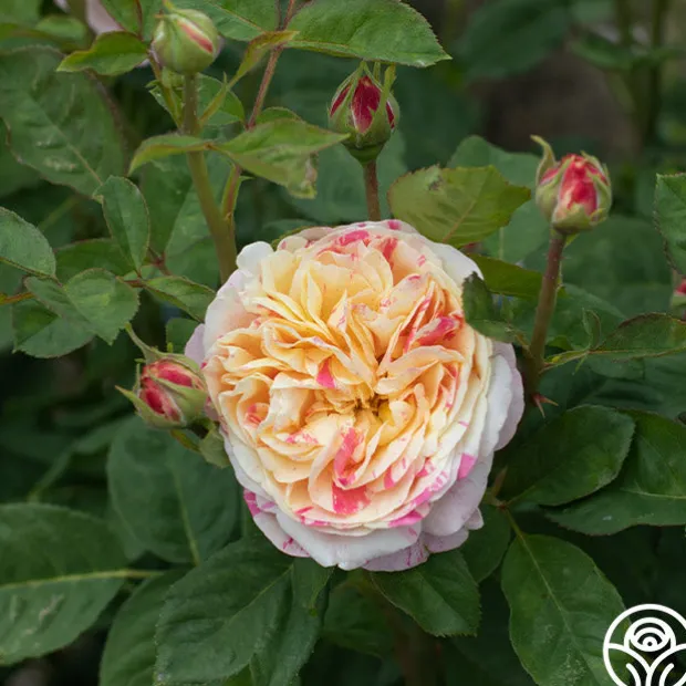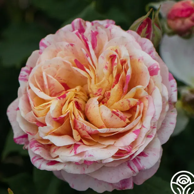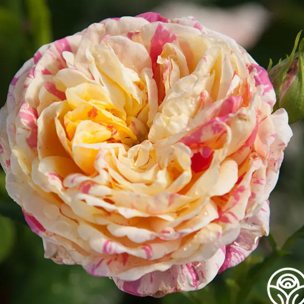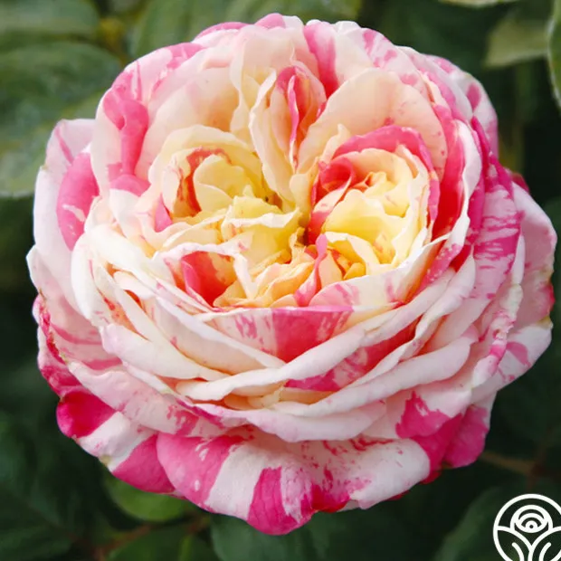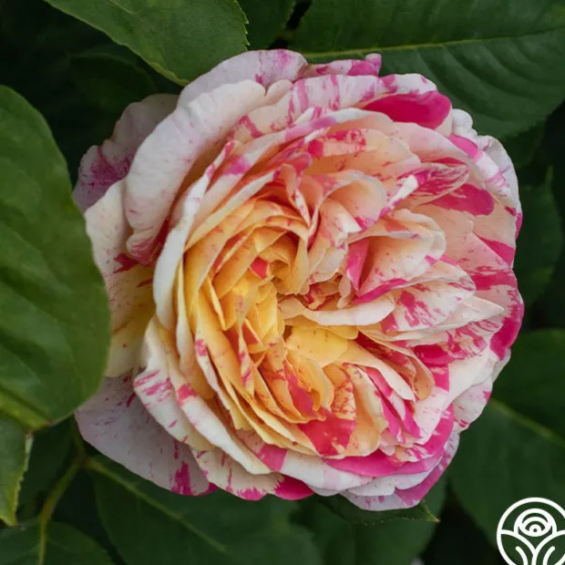 Lovers of striped roses and those who love whimsical beauty should not pass up this gem! The eye-catching, double, 4” blooms of Wonderstripe™ are an unusual combination of deep, smoky pink stripes splashed with a rich creamy yellow to white. She is a compact, well foliaged, repeat blooming Shrub with dark-green leaves that provide a wonderful backdrop for her striking flowers. With Wonderstripe™, no two flowers will be exactly alike but all will be heavily petaled and beautiful!